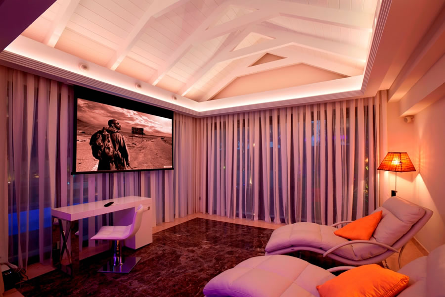 We have a very busy life in the UK, so my wife and I like nothing more than coming back here to relax. Marbella is a great place to come to with the warm weather though we rely heavily on the climate control. Once we get the temperature balance, all we then have to concern ourselves with is what music to queue on our playlist and what lighting scene we want to indulge in. The kids can jump in and out of the pool in the day and sit in front of the drop down cinema screen in the evening so everyone is kept happy and entertained.