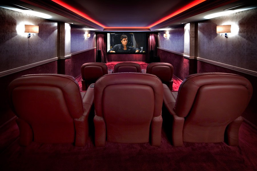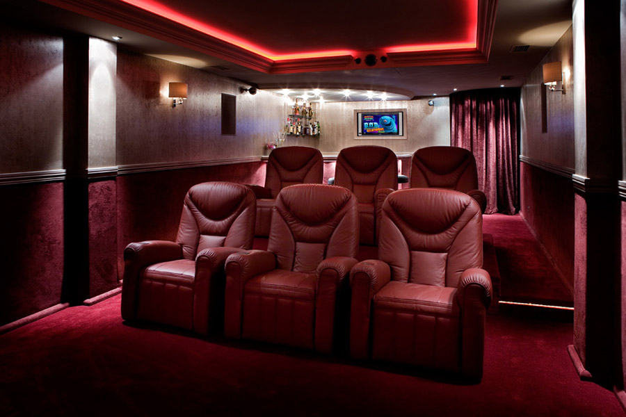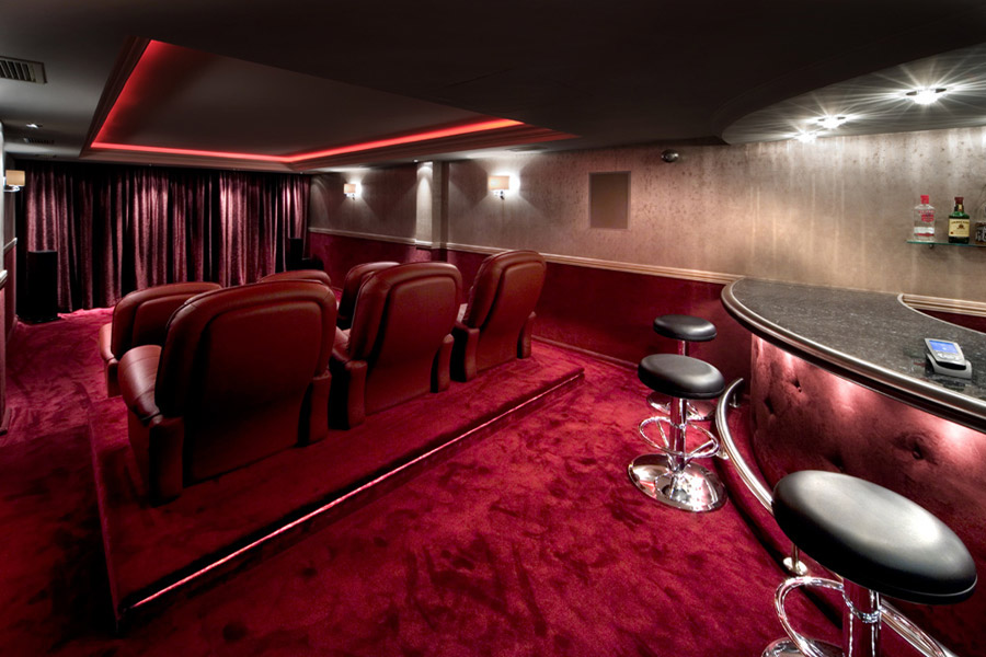 Built from a bare shell in the basement of an existing property, the end result was achieved by combining today’s tubing and cable network techniques and applying acute attention to detail to the overall look and aesthetics. The client was very hands-on in every aspect of the project. Everything had to be perfect: from the sound dampening and fabrication of the cinema structure to the audio-video specification, colour schemes, and the choice of materials used.